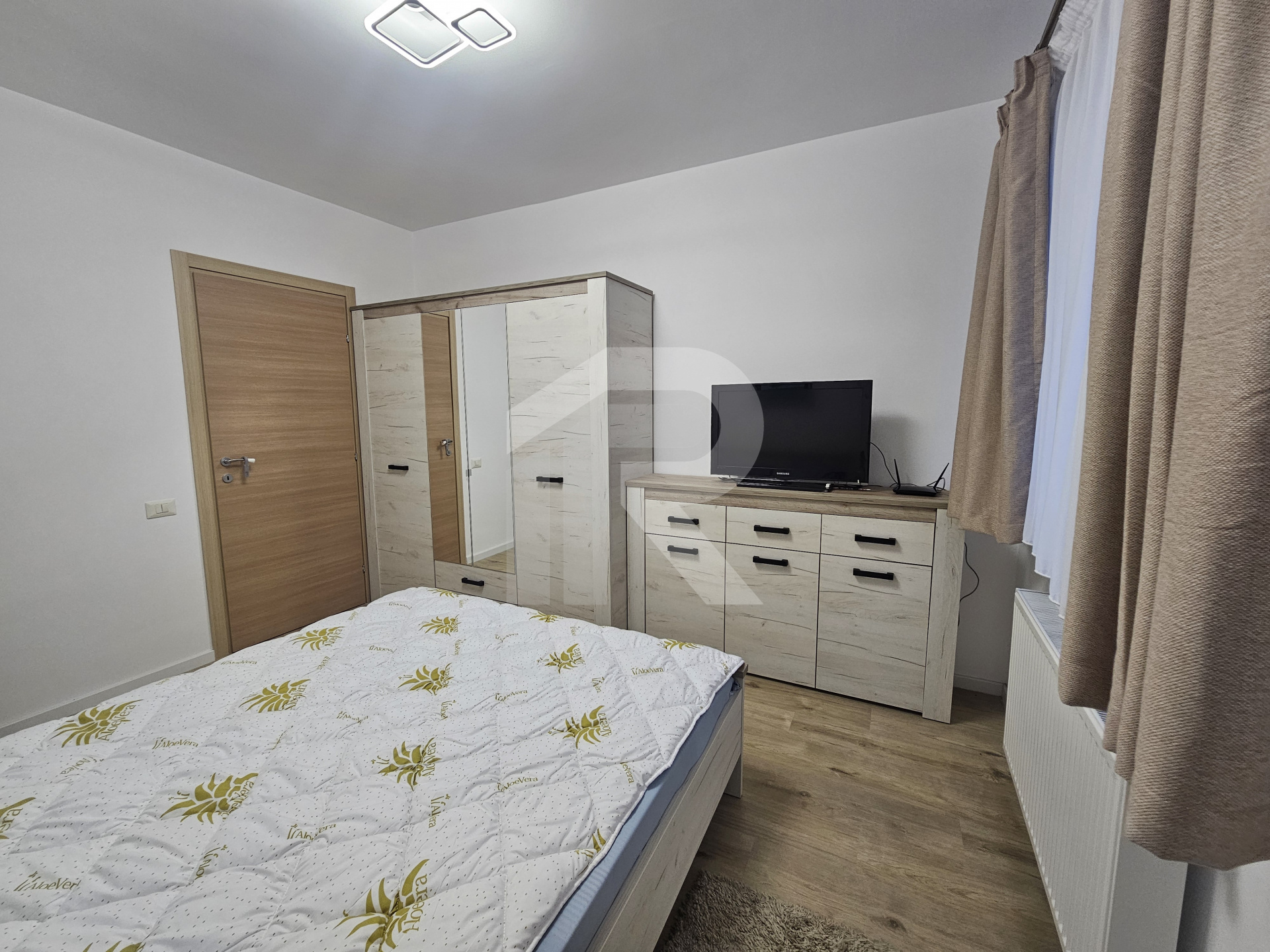 Centrală proprie, aer condiționat, loc de parcare inclus, bucătărie separată cu zonă de luat masa, living generos, dormitor matrimonial + dormitor secundar/birou, două băi – una cu cadă, una cu duș walk-in.