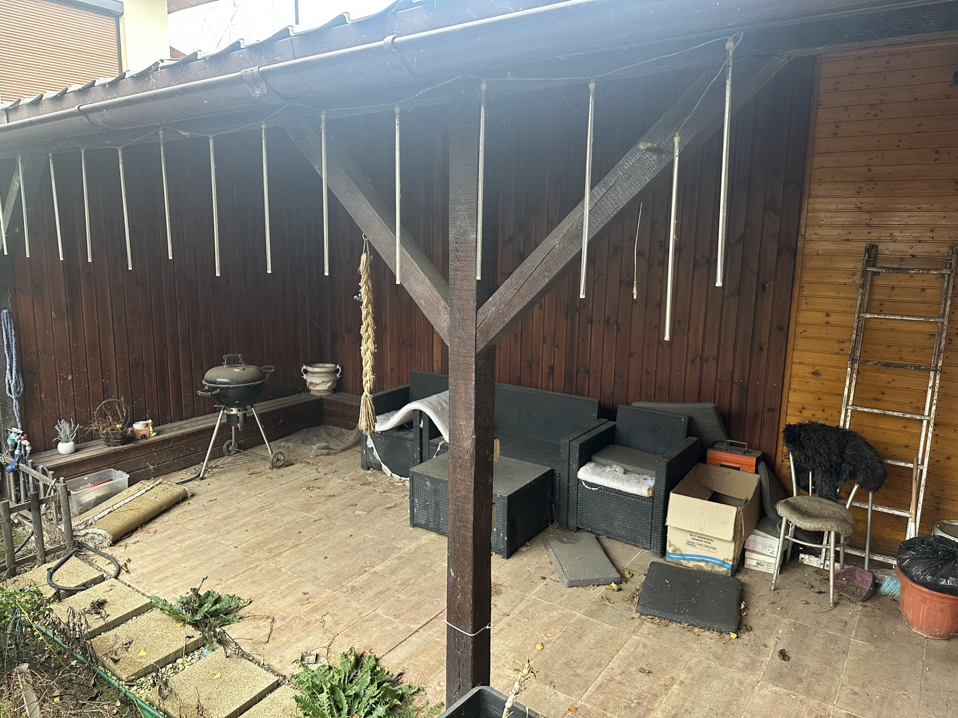 Curtea individuala: spatiu pavat pentru parcare, gradina, terasa acoperita si magazie pentru depozitare, fiind inconjurata de un gard, ce ofera intimitate.