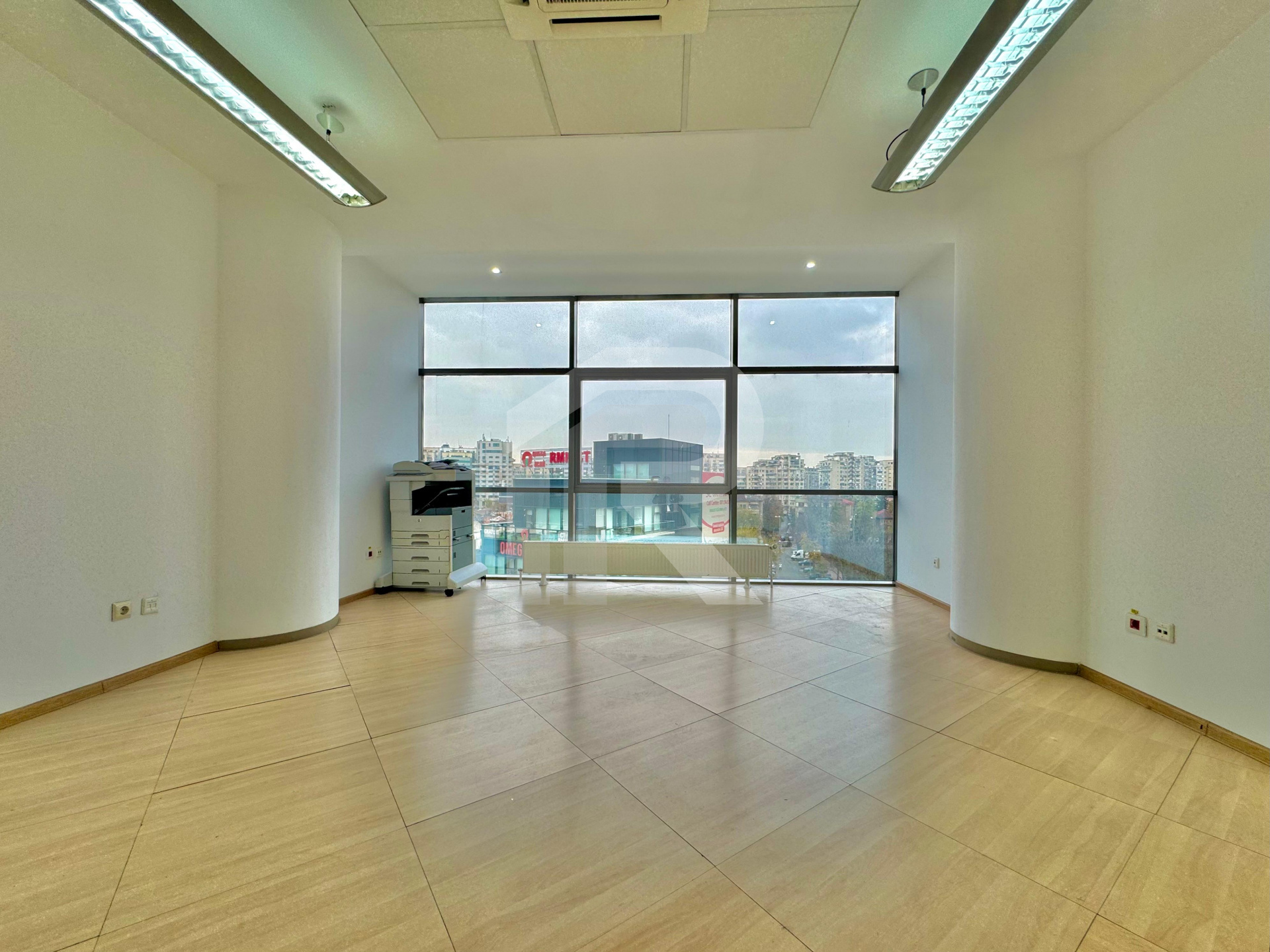 Spațiul de birouri se află la etajul 5, dispune de o cameră la care se adauga un hol propriu (poate fi folisit ca depozitare) având suprafața utilă de 31.6 mp, la care se adaugă spatiile comune. Spațiul are acces la doua grupuri sanitare comune.