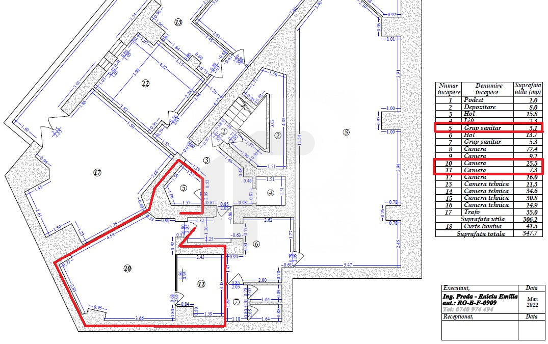 Inaltimea spatiului in acest moment este de 232 cm dar cu posibilitate de inaltare pana la 282cm.